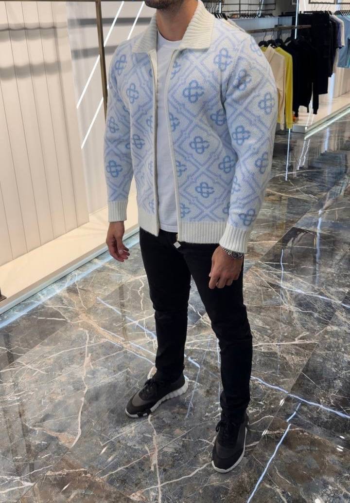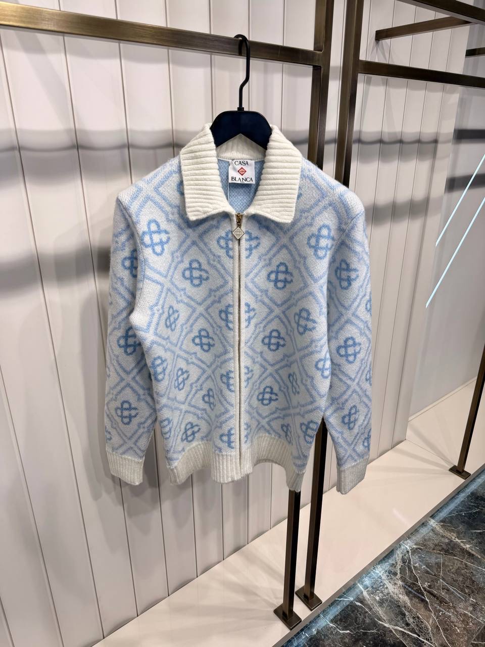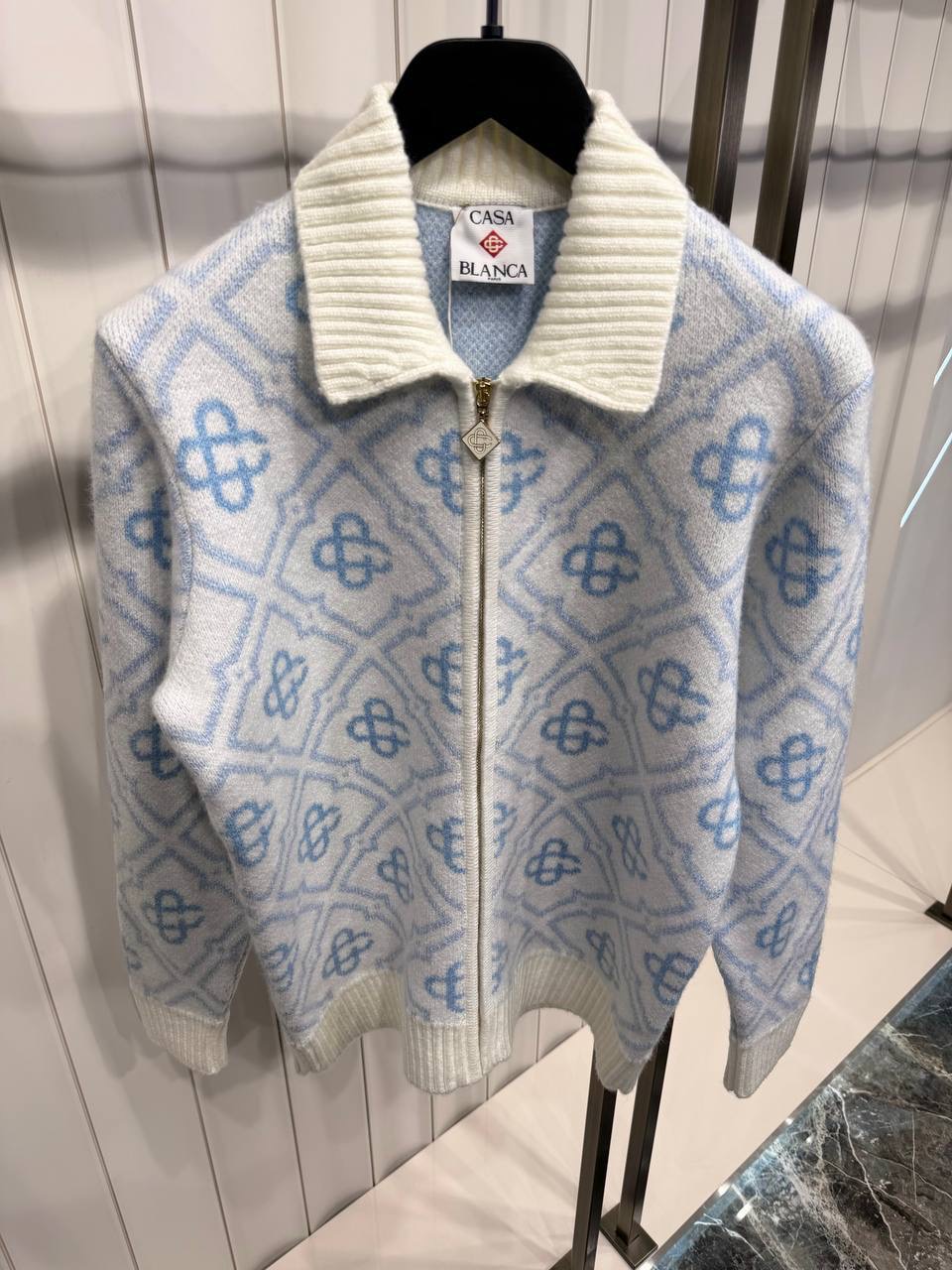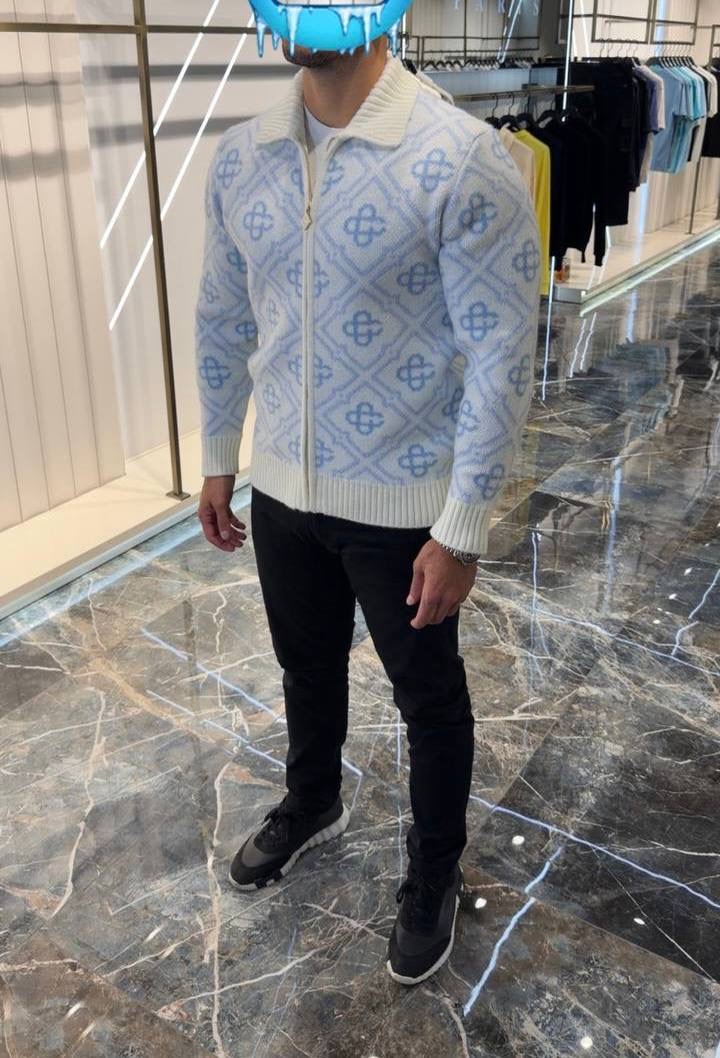 Blue Casablanca Mohair monogram zip jumper