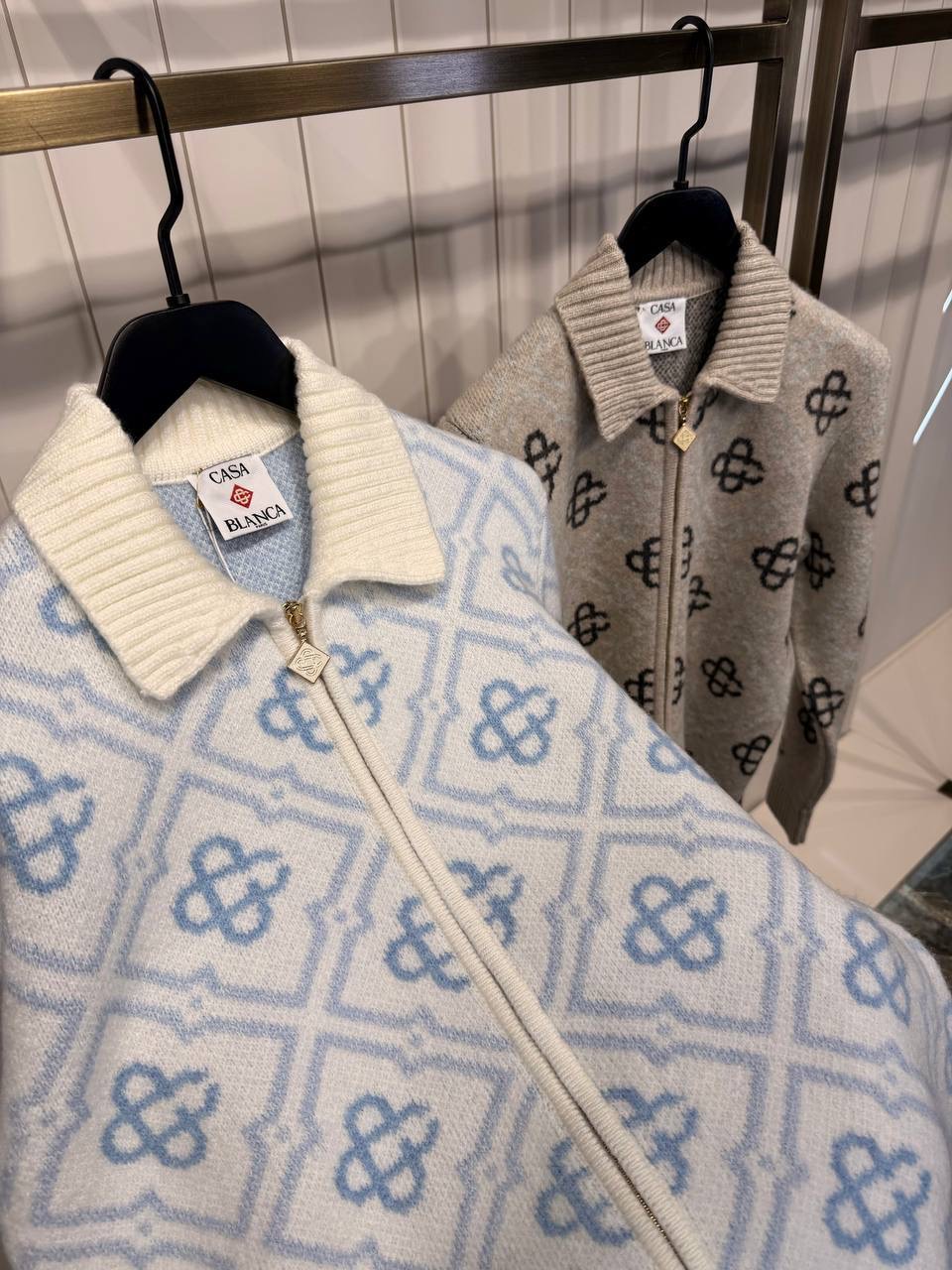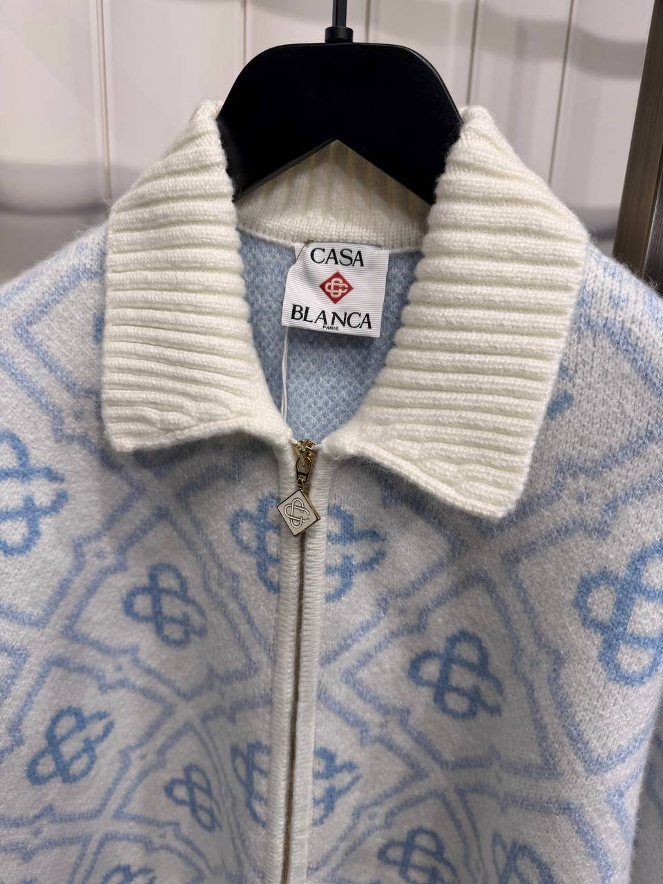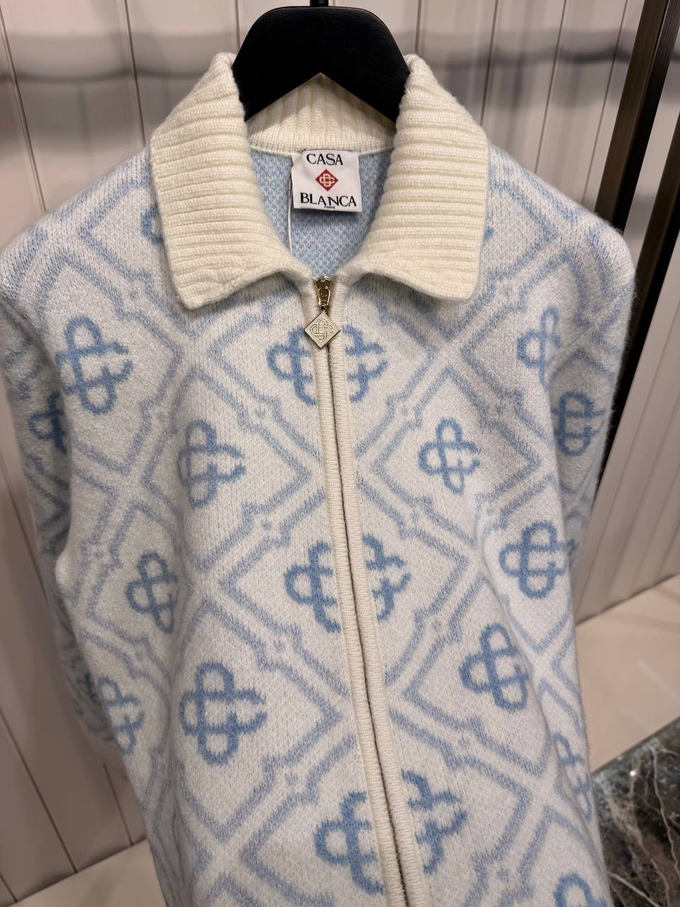 Blue Casablanca Mohair monogram zip jumper