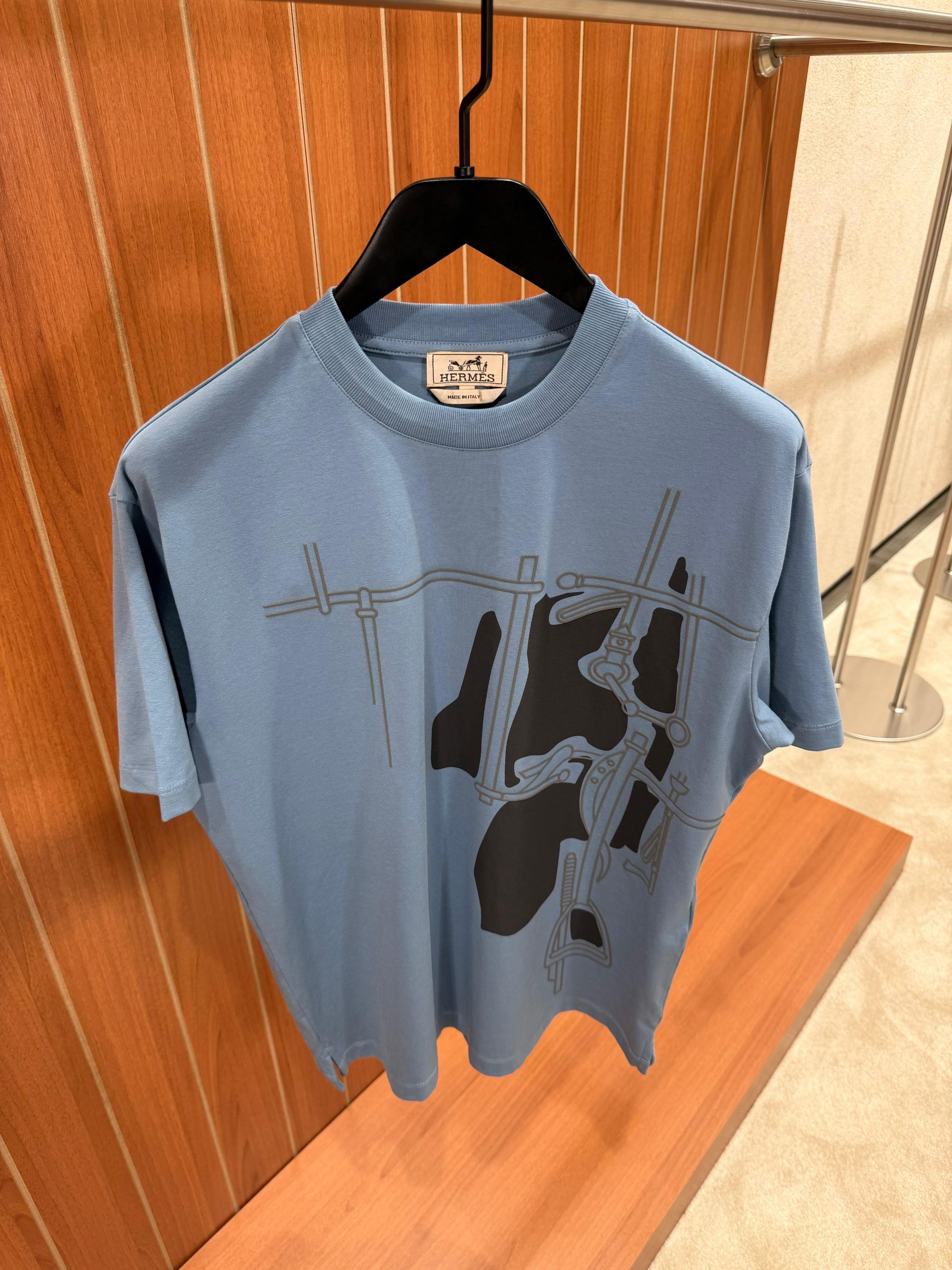 Blue hermes harnais en gouache 3D cotton tee