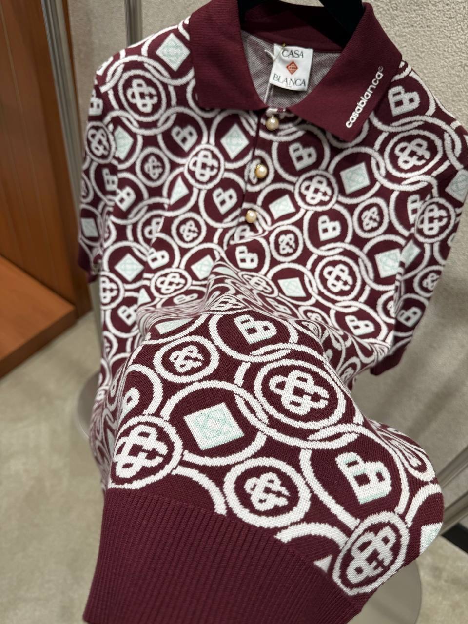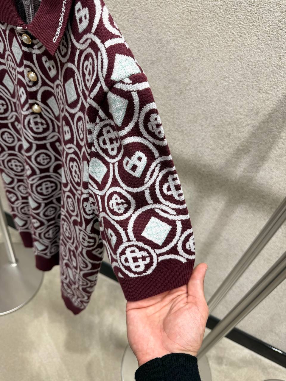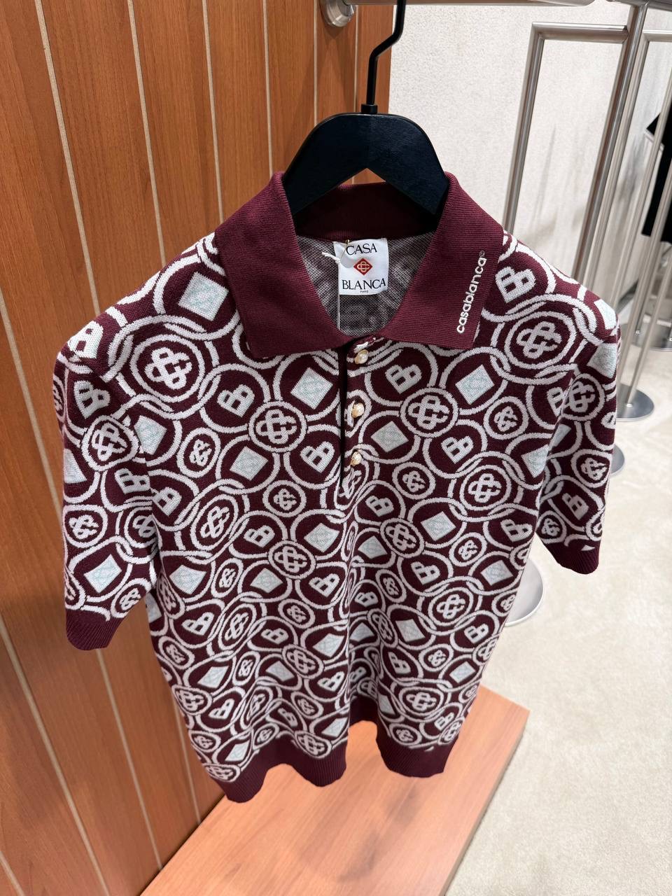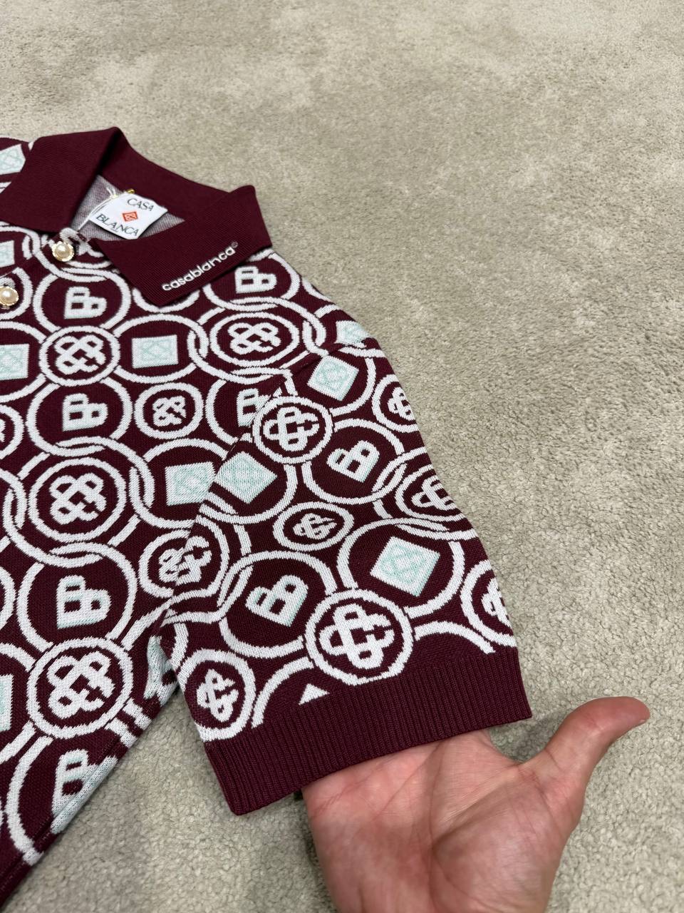 Burgundy Casablanca Men’s Monogram Knit Polo T-shirt
