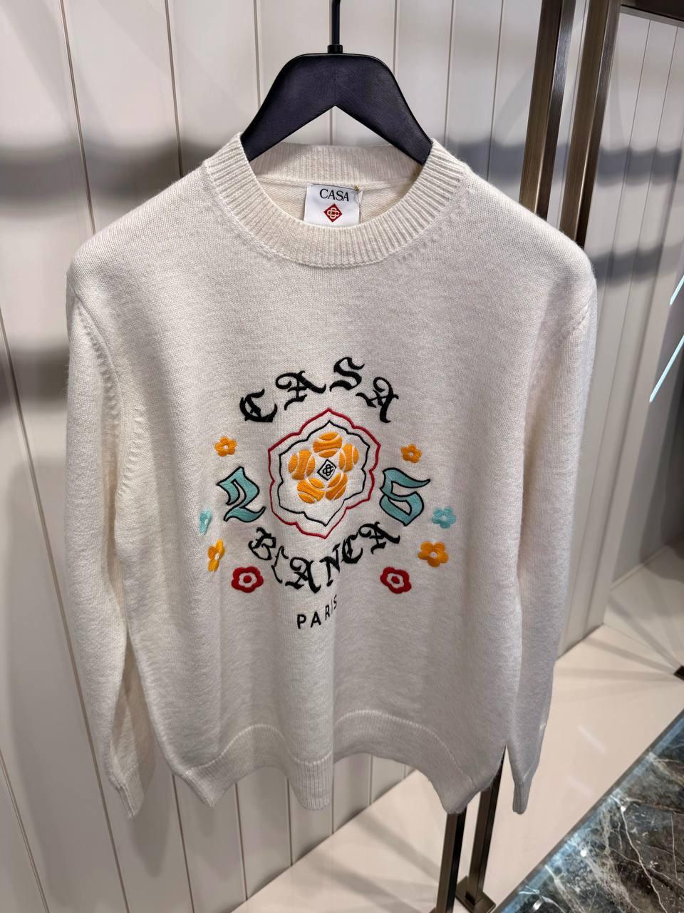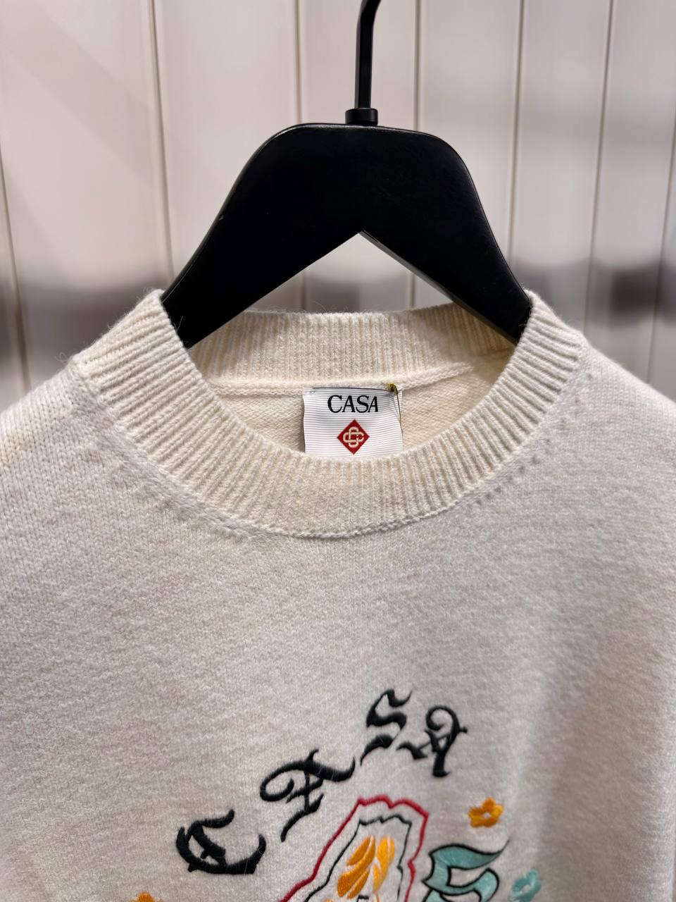 White Casablanca Emblem Merino crew-neck Knit Sweater