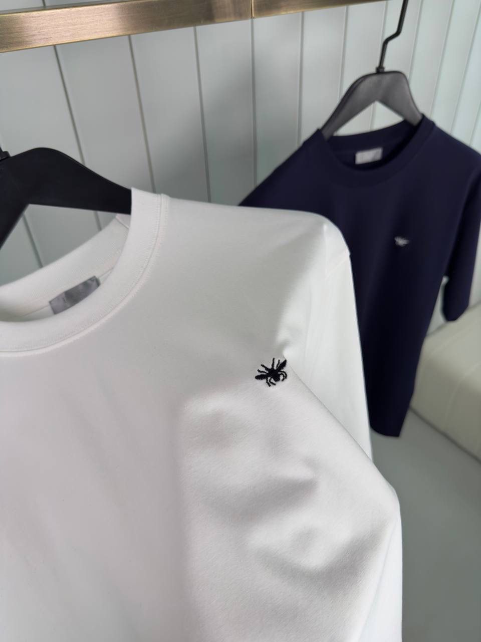 White Dior black bee embroidery jersey cotton tee
